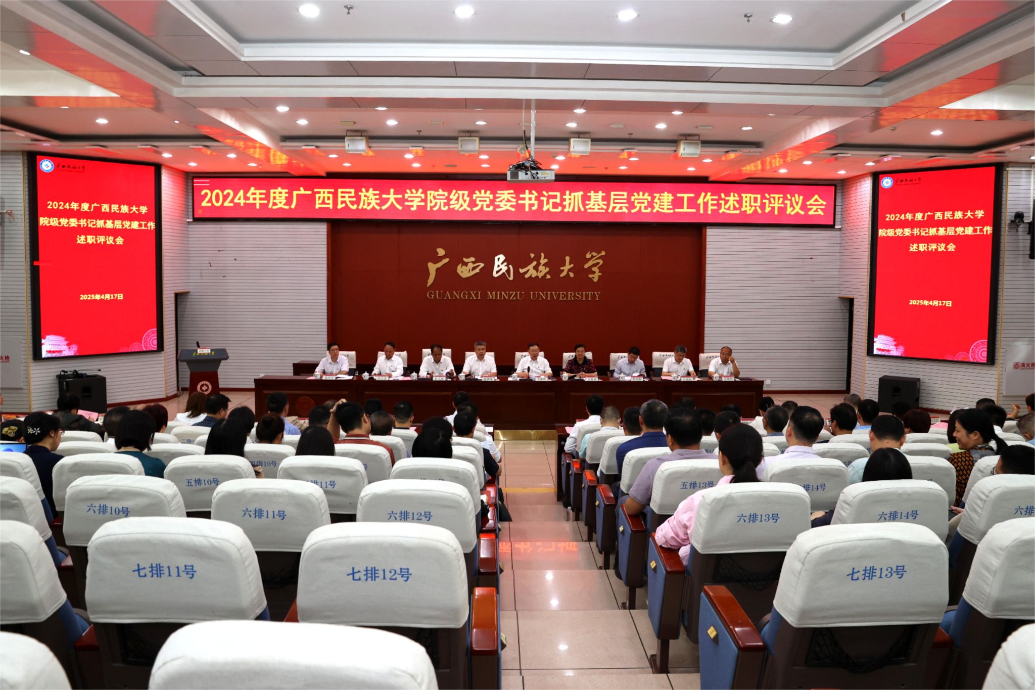 【大學生通訊社報道】4月17日上午,廣西民族大學2024年度院級黨委書記抓基層黨建工作述職評議會在科技樓報告廳召開。校黨委書記卞成林主持會議,黨委副書記、校長韋仕珍,校領導陳銘彬、鄧國彬、蔡高根、呂俊彪、何立榮、姜明國、高興宇出席會議,學校有關職能部門負責人,各院級黨委書記、院長、副書記與會。