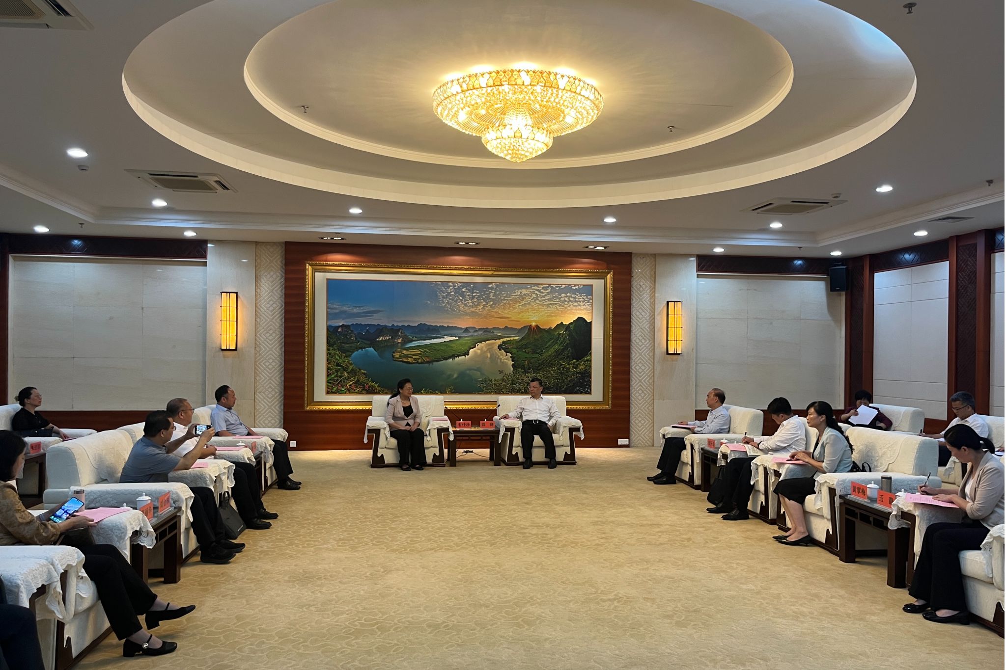 4月18日,校長韋仕珍帶隊赴崇左市調(diào)研,與崇左市委書記藍曉座談交流。崇左市委常委、組織部部長黃開道,市委常委、秘書長劉德智,副市長黃覃梅出席座談會。副校長何立榮、姜明國參加調(diào)研。