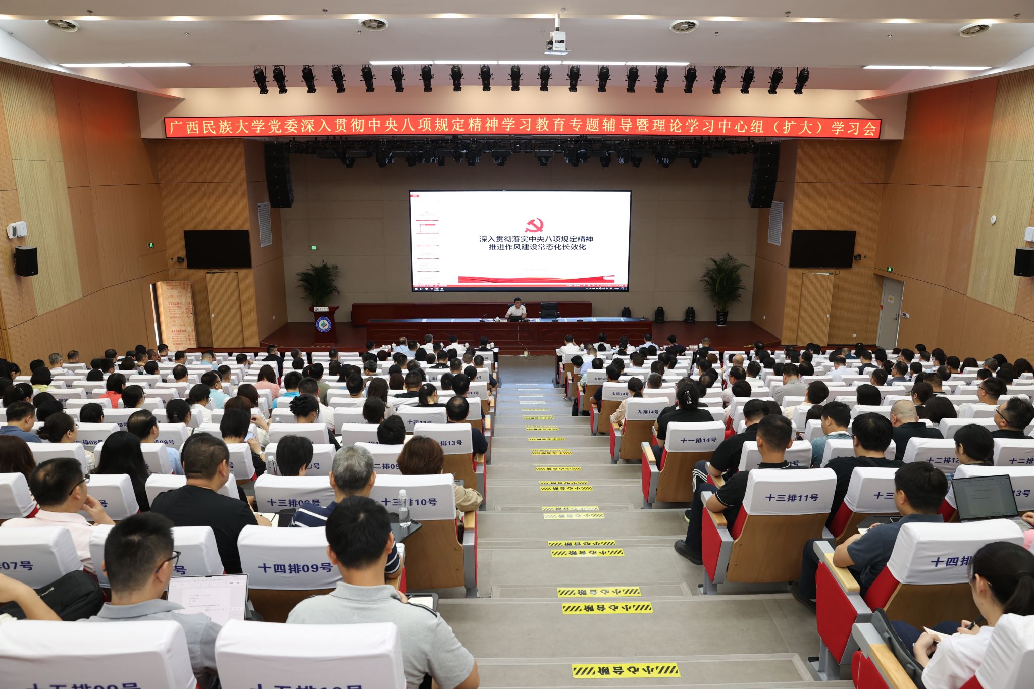 【大學(xué)生通訊社報(bào)道】4月24日下午,廣西民族大學(xué)黨委舉行深入貫徹中央八項(xiàng)規(guī)定精神學(xué)習(xí)教育專(zhuān)題輔導(dǎo)暨理論學(xué)習(xí)中心組(擴(kuò)大)學(xué)習(xí)會(huì)。校黨委書(shū)記卞成林主持會(huì)議,自治區(qū)紀(jì)委監(jiān)委第九監(jiān)督檢查室主任高軍鴻作專(zhuān)題輔導(dǎo)。學(xué)校領(lǐng)導(dǎo)、全體科級(jí)及以上干部參加會(huì)議。