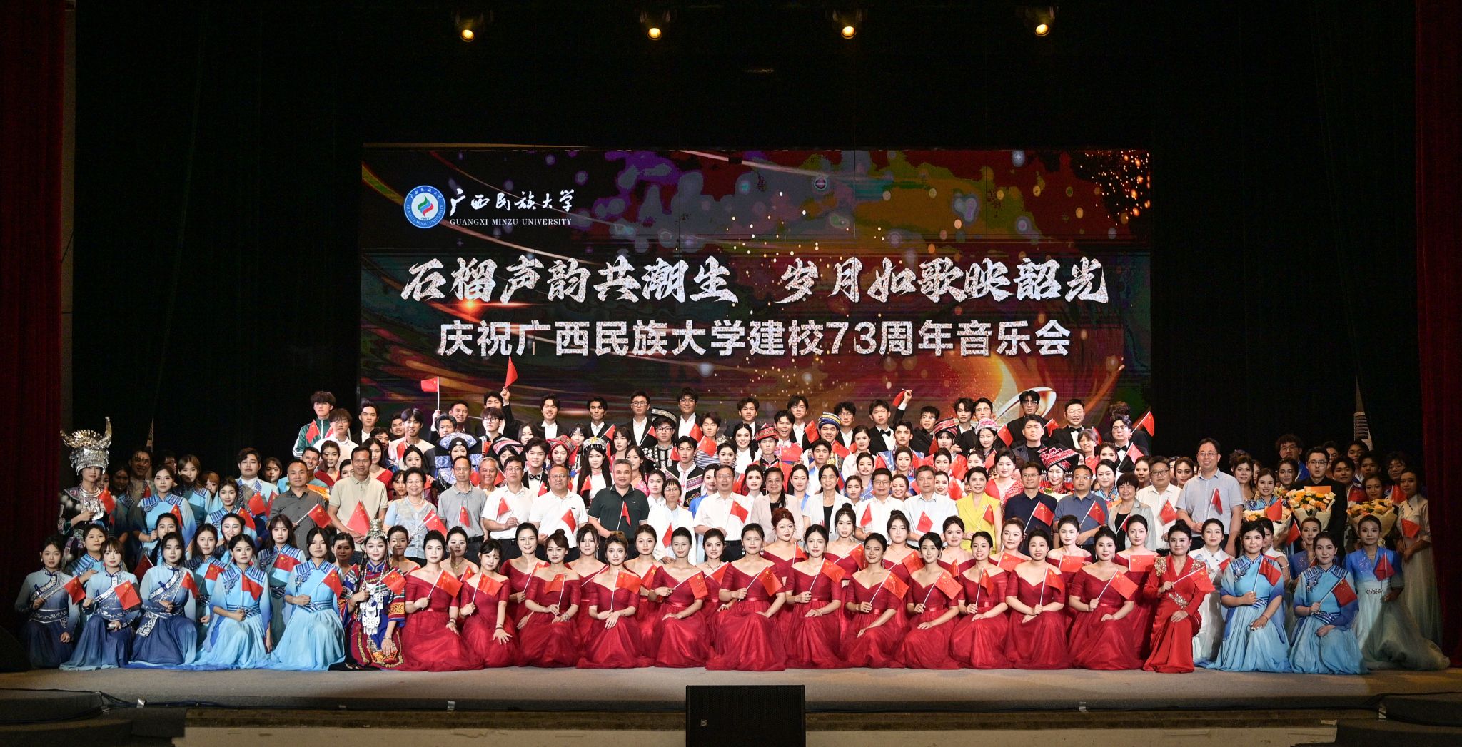 【大學生通訊社報道】5月18日晚,廣西民族大學慶祝建校73周年音樂會在相思湖校區禮堂舉行。校黨委書記卞成林,校長韋仕珍,全體在家校領導和校友代表、各學院師生代表一起觀看演出。