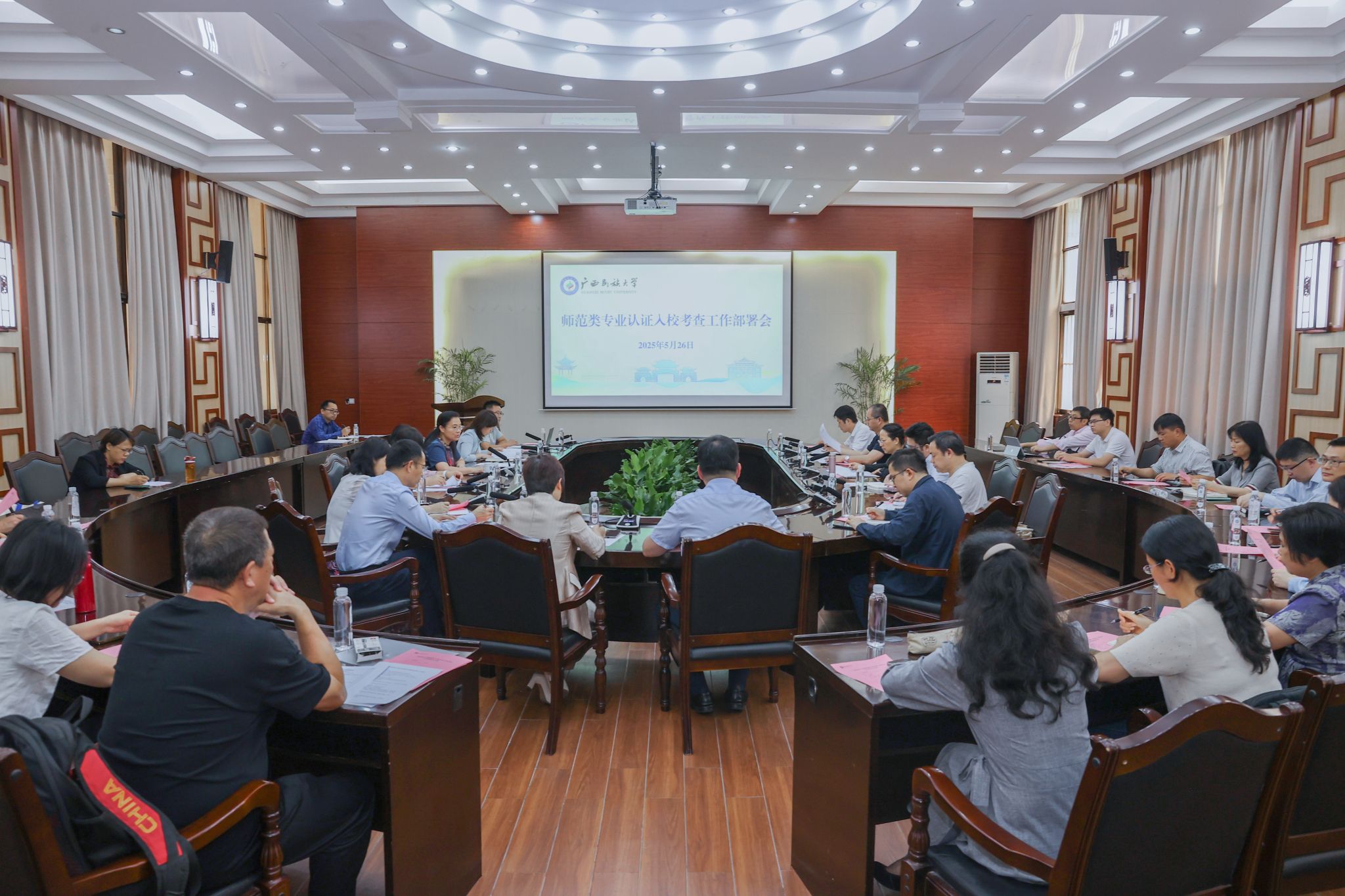 【大學(xué)生通訊社報(bào)道】5月26日下午,廣西民族大學(xué)校長(zhǎng)韋仕珍主持召開(kāi)師范類(lèi)專(zhuān)業(yè)認(rèn)證入??疾楣ぷ鞑渴饡?huì)。教務(wù)處、教學(xué)質(zhì)量監(jiān)測(cè)與評(píng)估中心、教師教學(xué)發(fā)展中心,有關(guān)學(xué)院、職能部門(mén)負(fù)責(zé)人與會(huì)。