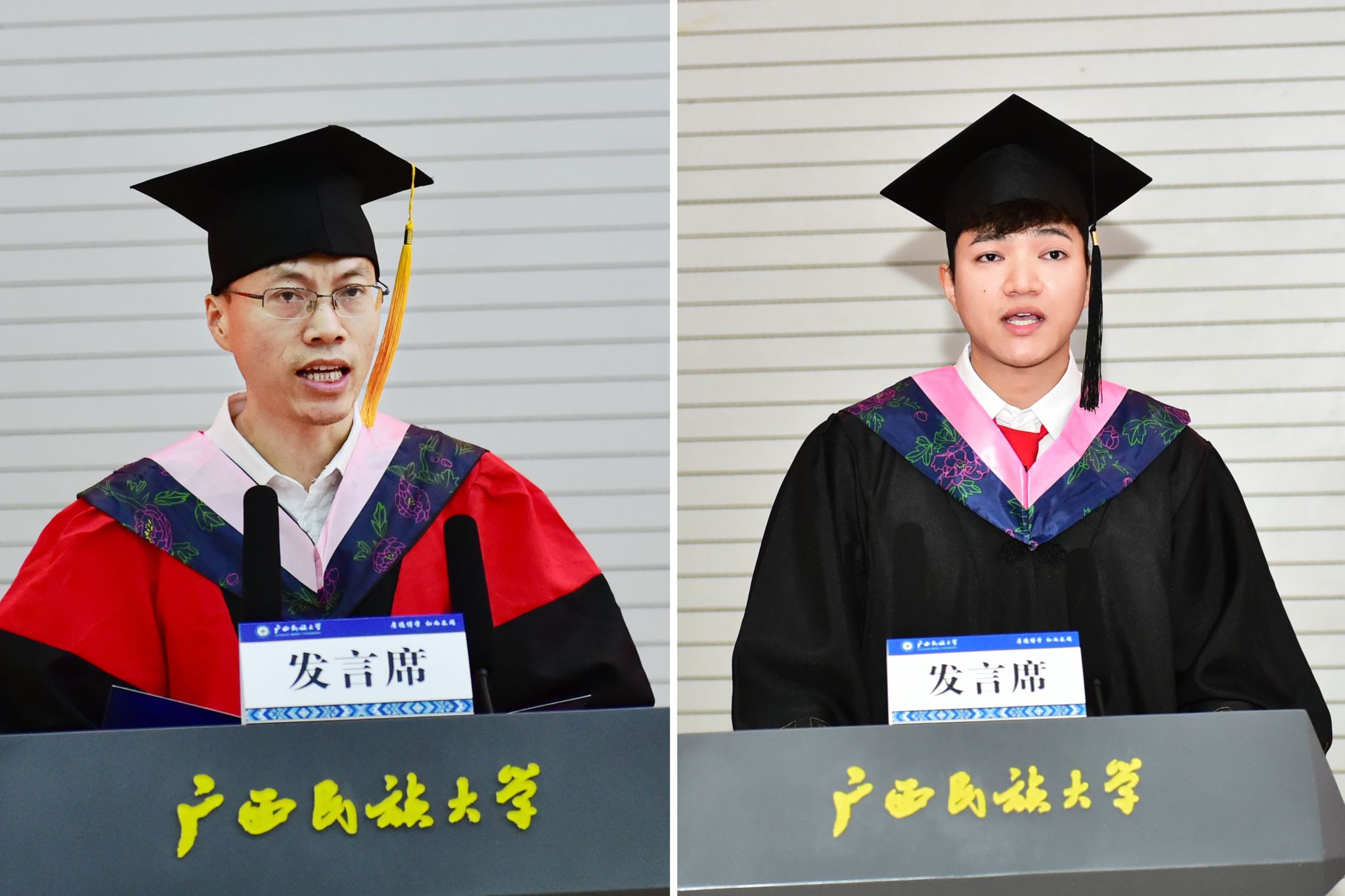 廣西民族大學(xué)黨委書記卞成林向畢業(yè)生贈(zèng)送紀(jì)念禮物
