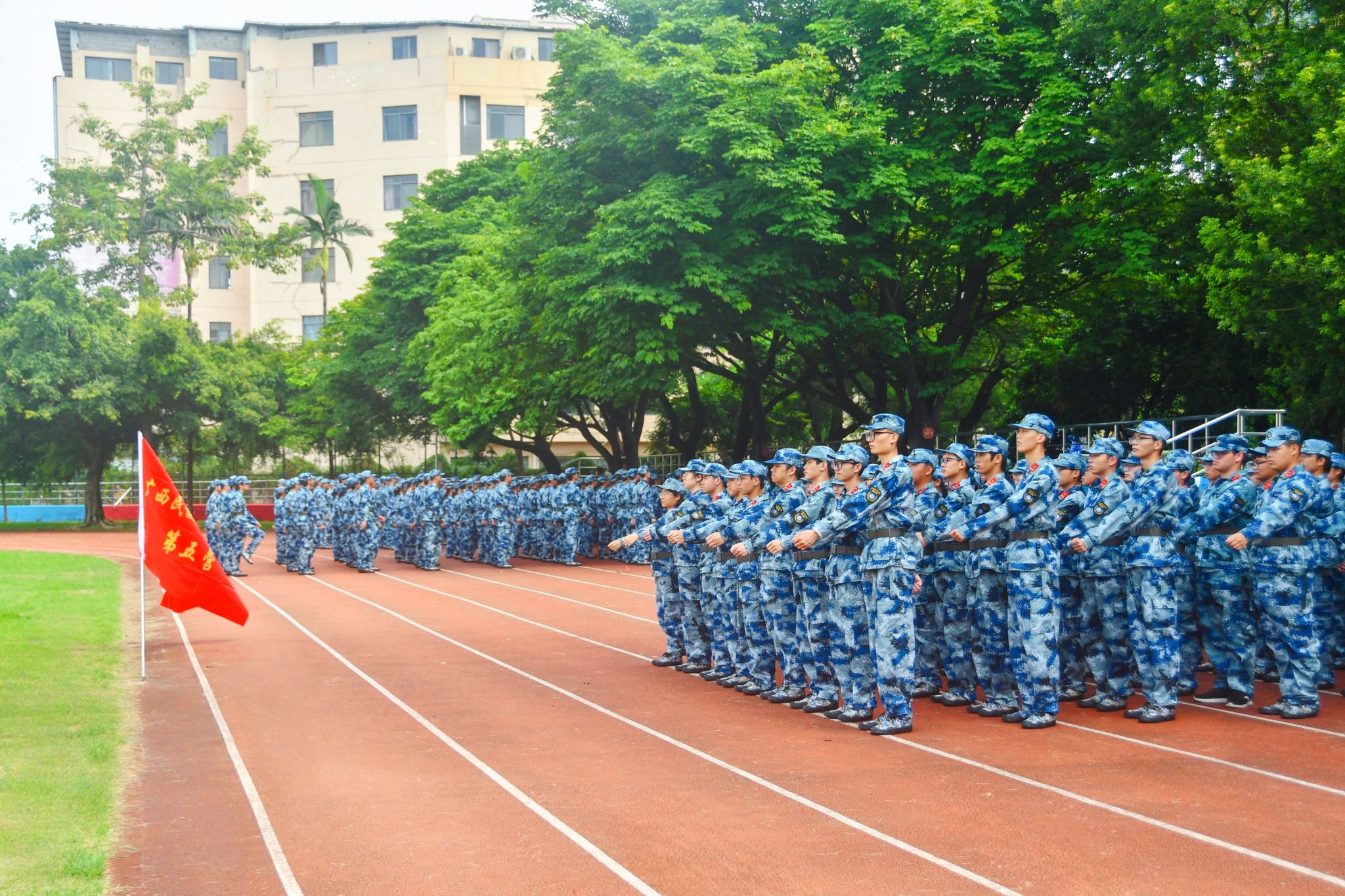 唐平秋勉勵(lì)同學(xué)們珍惜軍訓(xùn)機(jī)會(huì),在艱苦訓(xùn)練中磨煉意志、增強(qiáng)體魄,培養(yǎng)團(tuán)結(jié)協(xié)作、令行禁止的作風(fēng),深刻領(lǐng)會(huì)“有理想、敢擔(dān)當(dāng)、能吃苦、肯奮斗”的精神內(nèi)涵。希望同學(xué)們將軍訓(xùn)中形成的優(yōu)良品質(zhì)延續(xù)到今后的學(xué)習(xí)生活中,堅(jiān)定理想信念,實(shí)踐報(bào)國之行,努力成為擔(dān)當(dāng)民族復(fù)興大任的時(shí)代新人。
