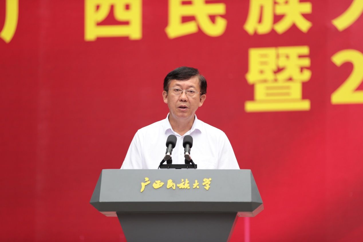 【大學生通訊社報道】9月21日上午,廣西民族大學舉行2026屆畢業生秋季首場大型雙選會暨2026屆畢業生就業服務啟動儀式。校黨委書記唐平秋出席儀式并講話,校長韋仕珍出席活動,校黨委副書記陳銘彬主持儀式。南寧市人力資源和社會保障局副局長陸多迎、各學院負責同志、教師及學生代表參加。