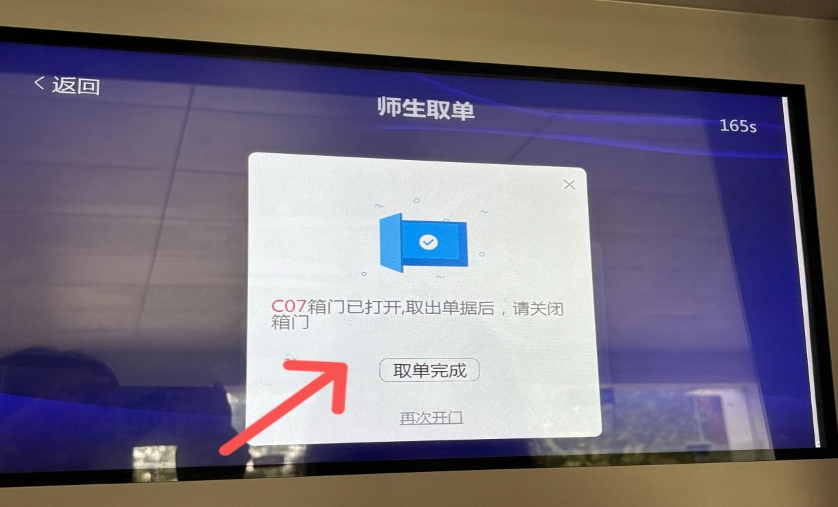 第三步:按頁面提示的信息,取出退單材料,關閉箱門。