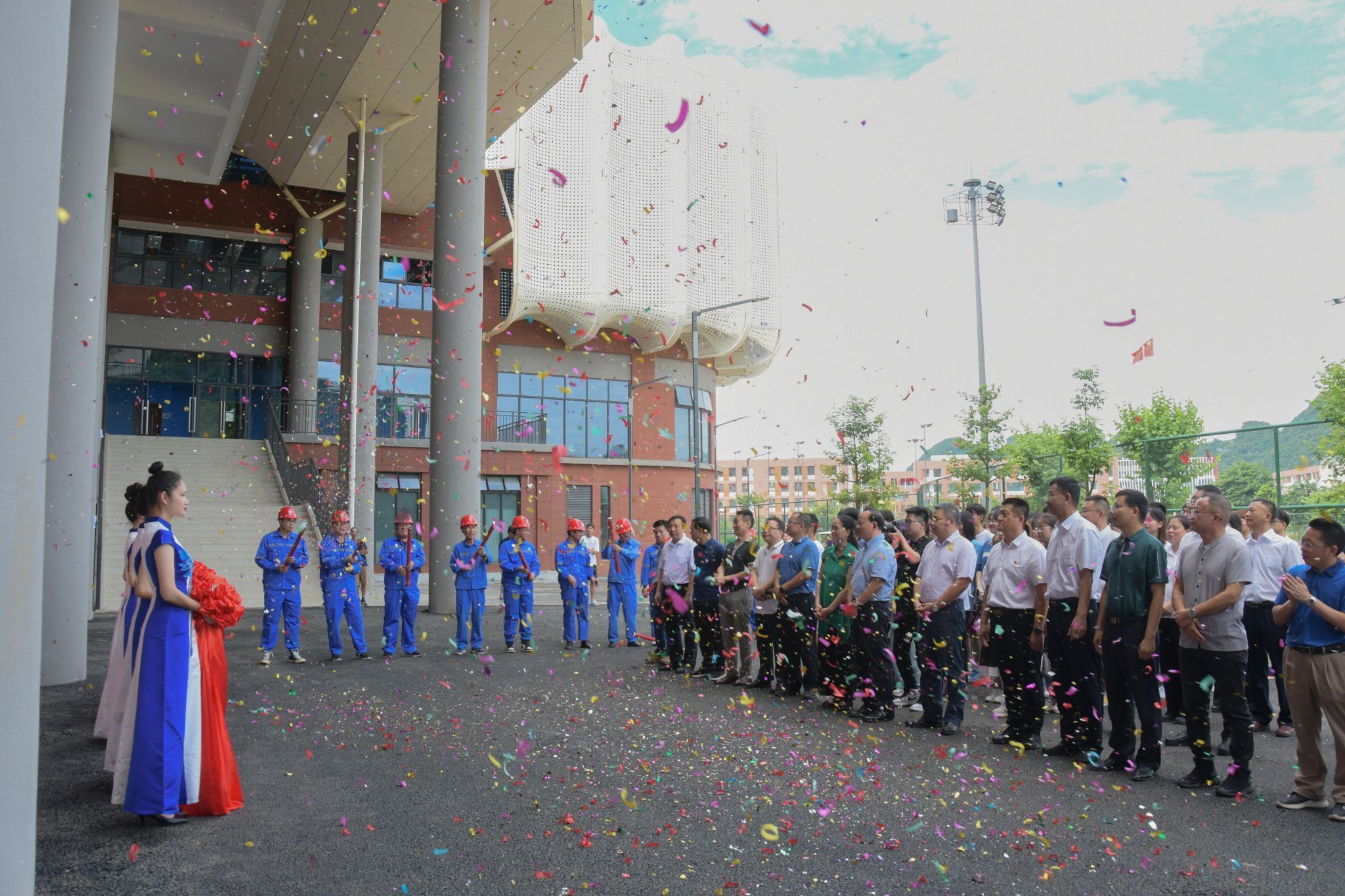 武鳴校區體育館、相思湖校區文化研習基地、思源湖校區大學生活動中心落成剪彩,將促進校園文化建設,為學生提供更多特色活動內容。