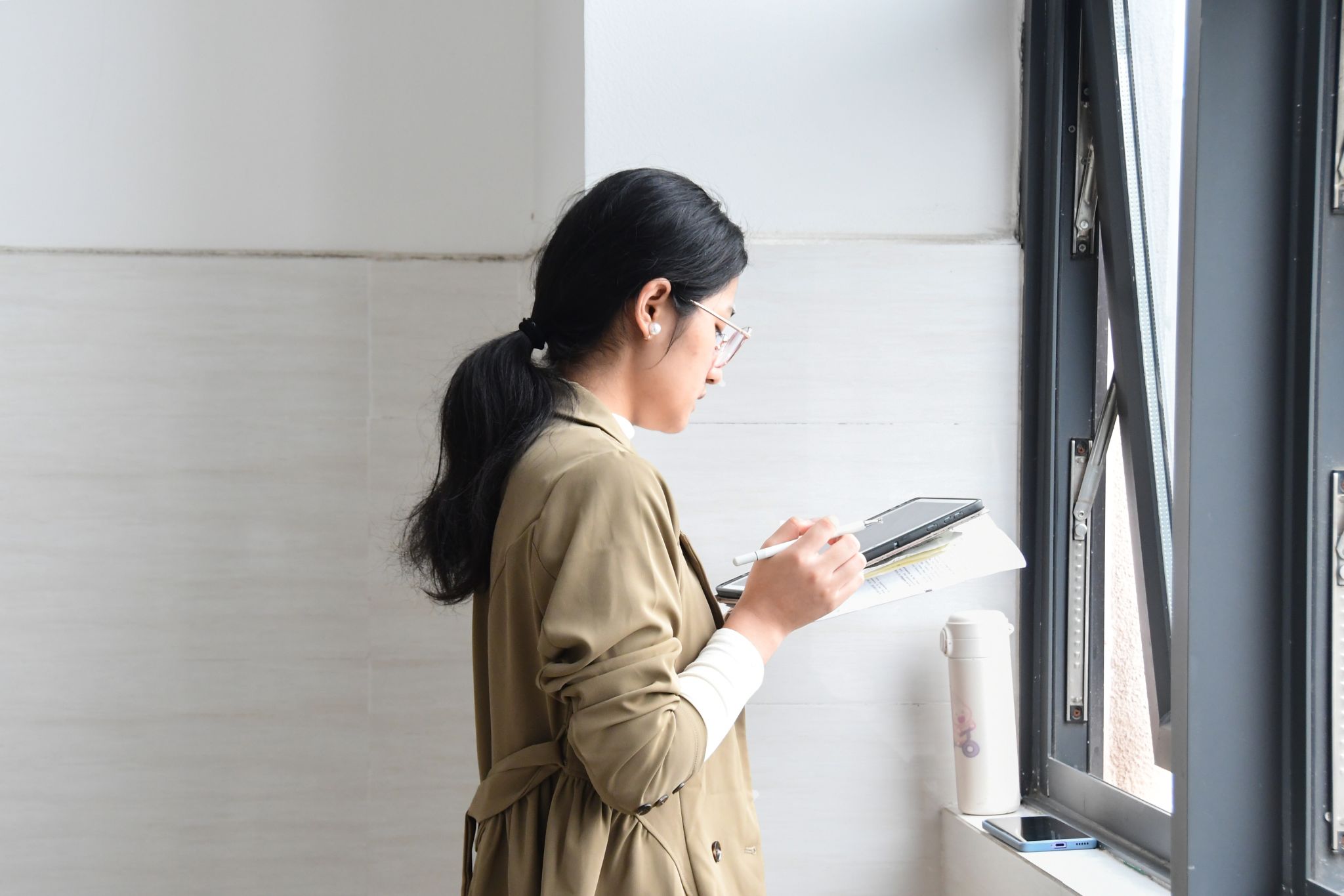 考研人在過道背書