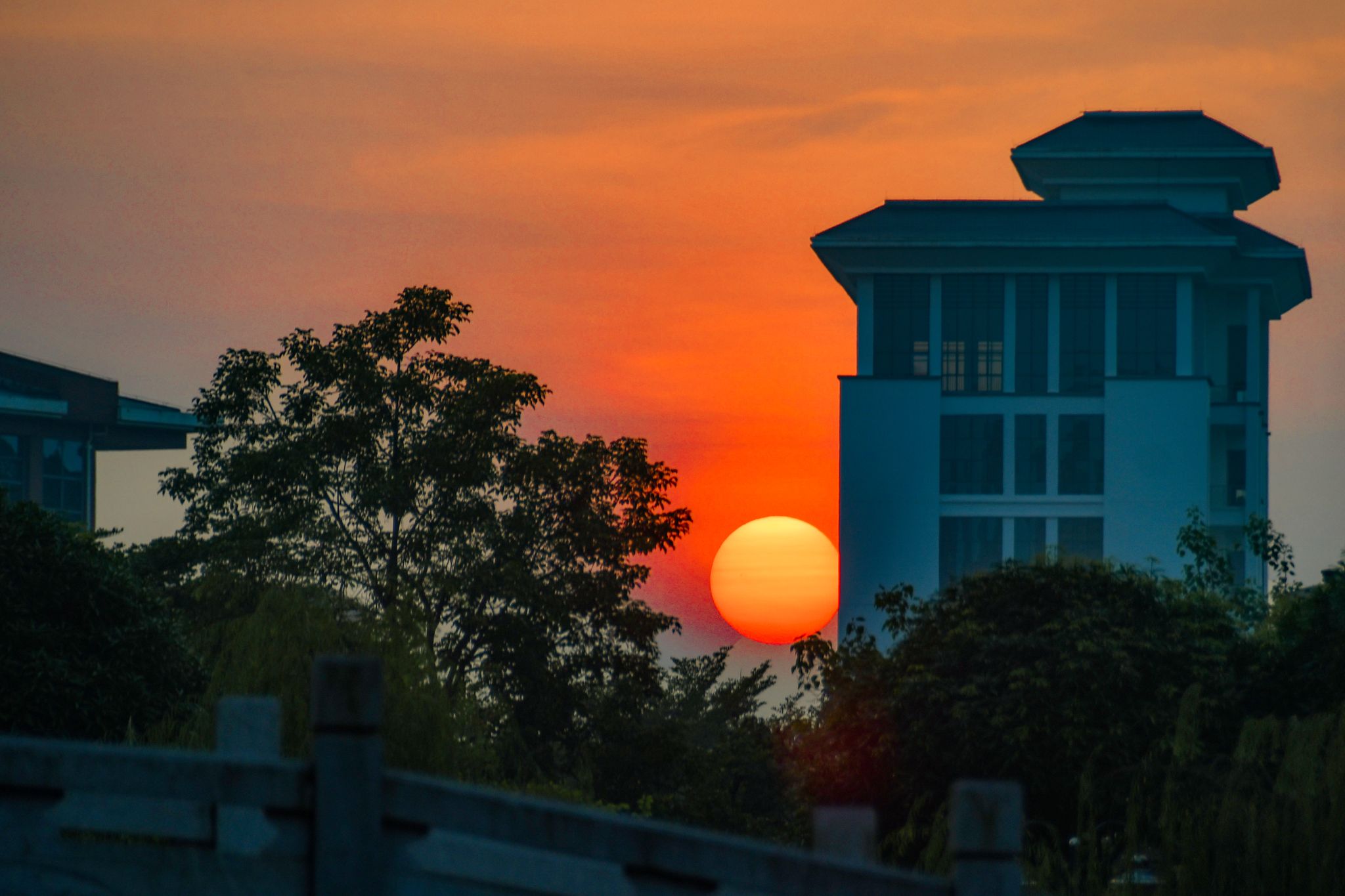 秋葉掩映,樓臺清朗