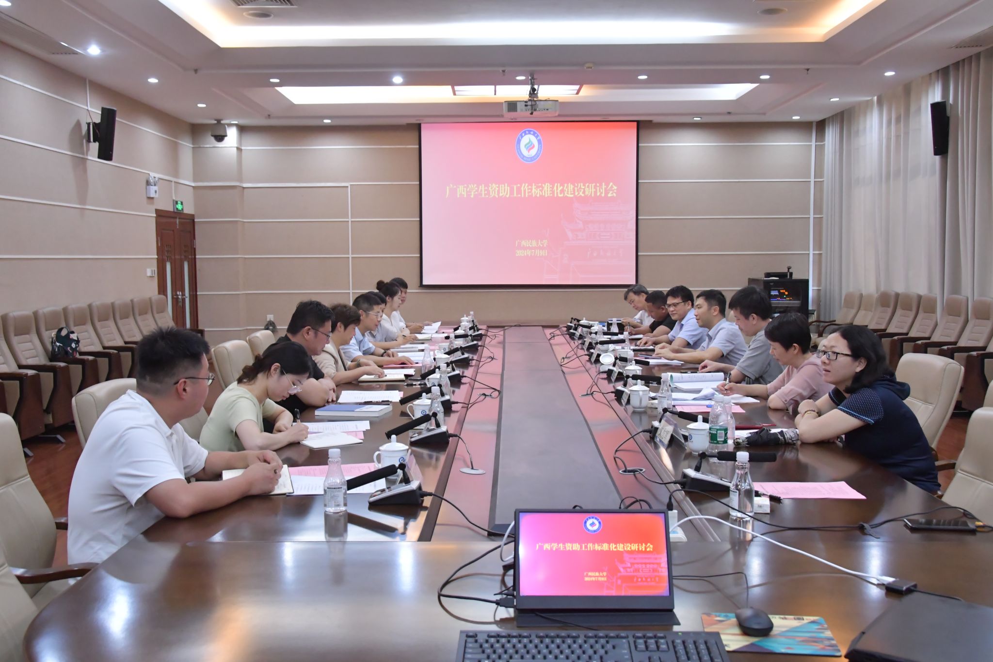 【大學生通訊社報道】7月9日,廣西學生資助工作標準化建設研討會在廣西民族大學國際教育綜合樓一樓會議室召開。校黨委副書記鄧國彬,自治區資助管理中心主任全斌出席會議,有關部門負責人與會。
