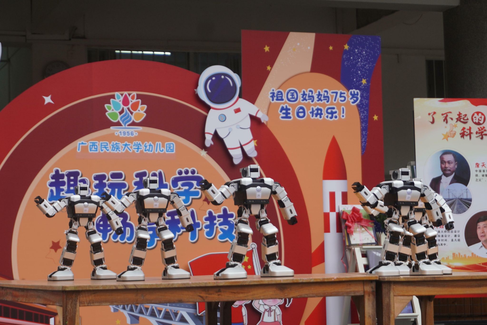機器狗的表演令人意猶未盡,緊接著人形機器人登場了,為小朋友們展現了一段精彩的齊舞。