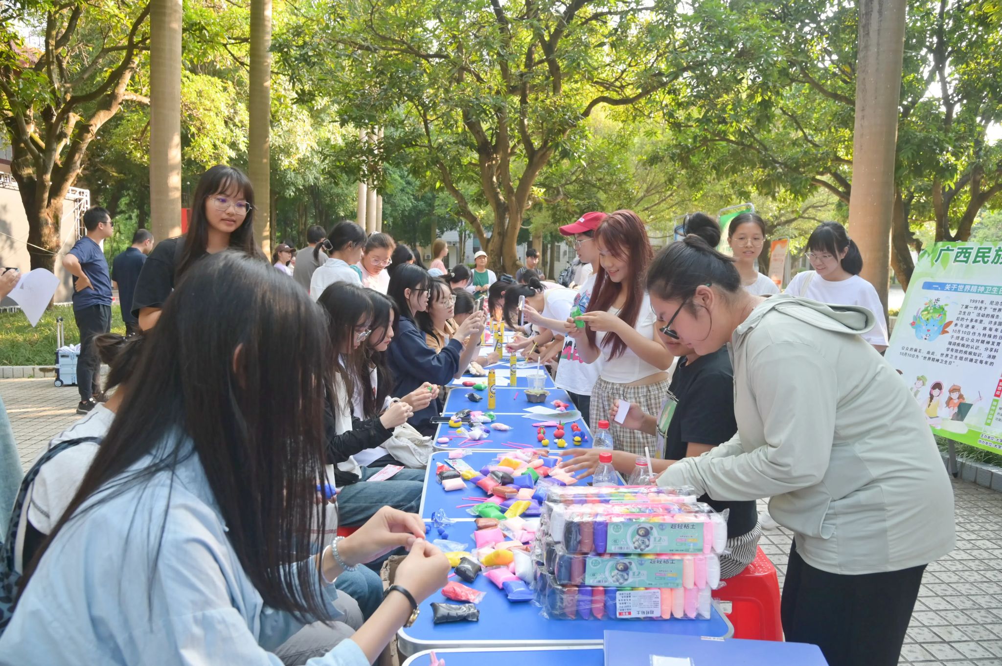 世界精神衛(wèi)生日是由世界精神病學(xué)協(xié)會在1992年發(fā)起設(shè)立的,時間為每年的10月10日。本次宣傳活動共有五個活動項目,分別為心理健康教育大數(shù)據(jù)平臺APP下載、情緒曼陀羅、快樂打卡之旅、奇妙橡皮泥和心理健康知識問答,讓學(xué)生們能夠在活動中感受快樂、釋放壓力、維護(hù)心理健康。活動在校園內(nèi)通過展板、心理健康知識問答等形式,向師生宣傳世界精神衛(wèi)生日有關(guān)知識與心理健康知識,解答師生們關(guān)于心理健康的疑問。