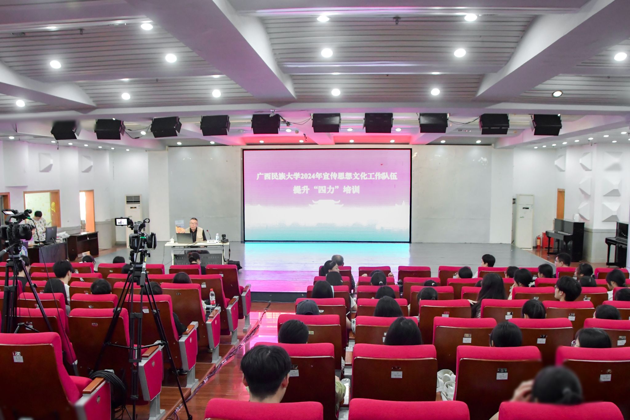 【大學(xué)生通訊社報(bào)道】10月19日,廣西民族大學(xué)在相思湖校區(qū)大學(xué)生活動(dòng)中心201室召開(kāi)2024年宣傳思想文化工作隊(duì)伍提升“四力”培訓(xùn)班。民族畫(huà)報(bào)社朝鮮文編輯部主任、主任記者陳立民作“用圖片講故事”主題培訓(xùn),各學(xué)院負(fù)責(zé)新聞宣傳工作師生代表,學(xué)校大學(xué)生通訊社、相思湖電臺(tái)、新媒體工作室等社團(tuán)參加,思源湖校區(qū)、武鳴校區(qū)線上參會(huì)。