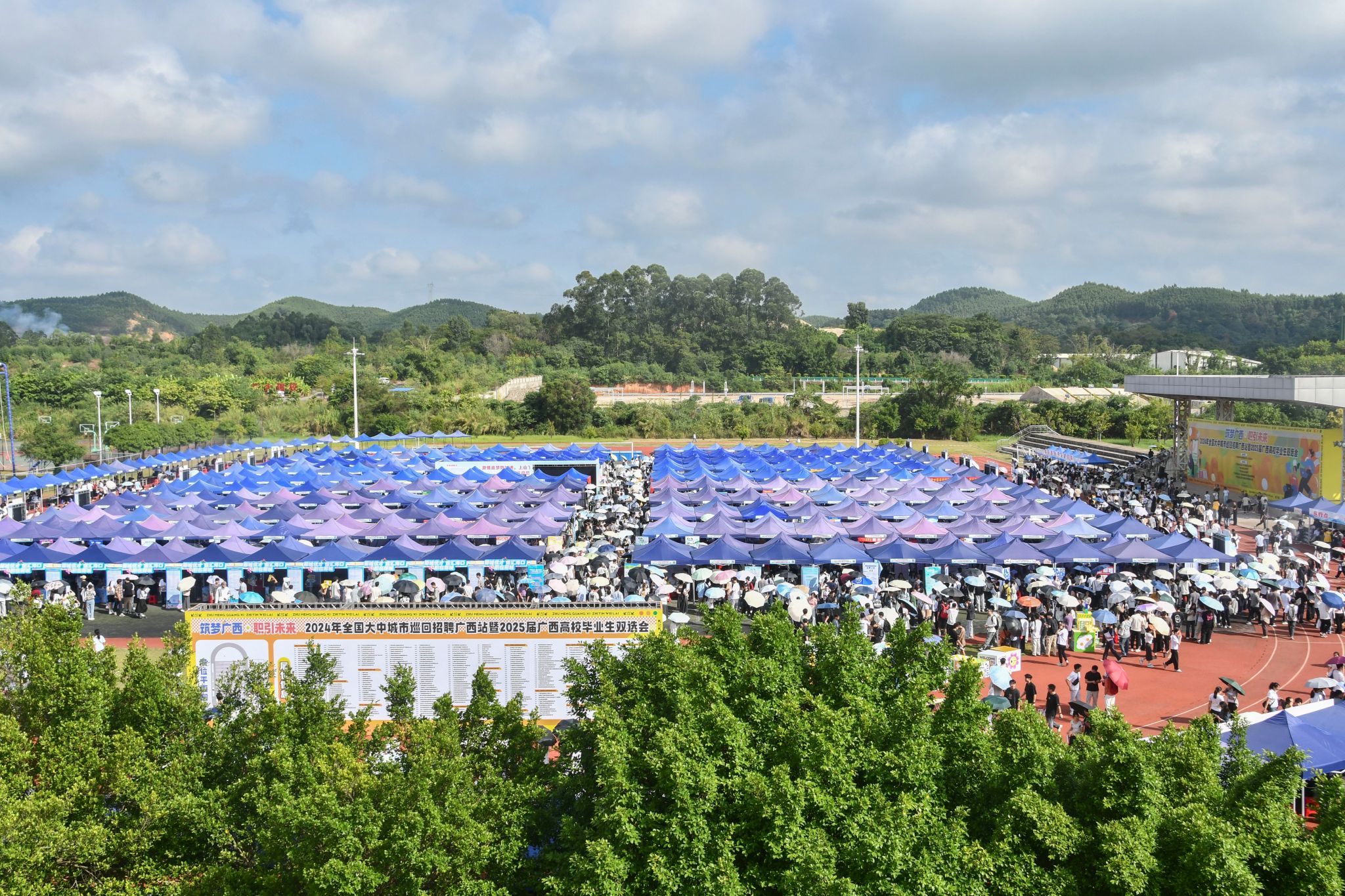 【大學生通訊社報道】10月19日,2024年全國大中城市巡回招聘廣西站暨2025屆廣西高校畢業生雙選會在廣西民族大學思源湖校區舉行。自治區人力資源和社會保障廳二級巡視員侯龍生,廣西民族大學黨委常委、副校長姜明國到場調研。